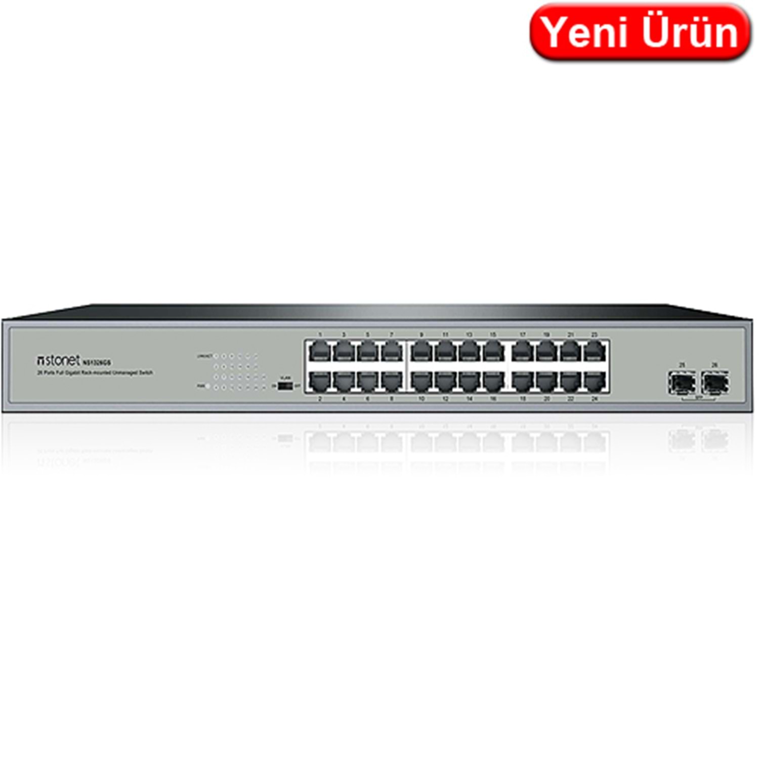 24 10/100/1000M RJ45 ports and 2 gigabit SFP ports